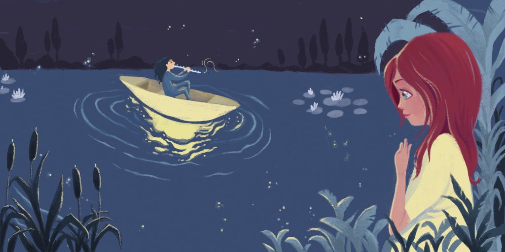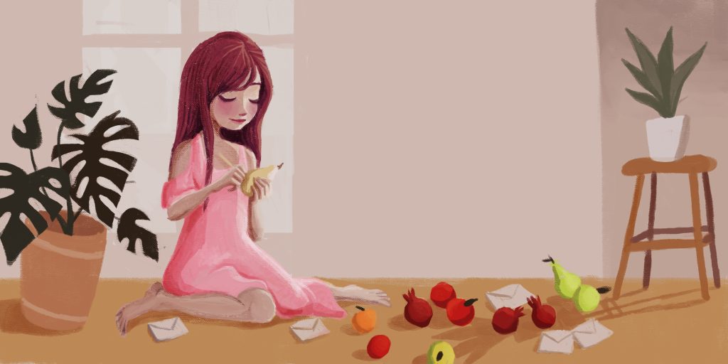 This project is a series of illustrations for a book written by Ahmad Reza Ahmadi, which is about a girl with blue eyes dreaming about different blue items. During her journey in her dreams, she found many friends in different places, and she received gifts from he friends, which were her dream blue items.